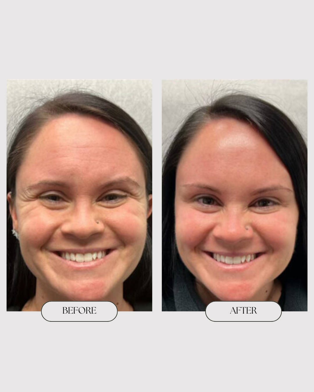Botox targets and temporarily relaxes the facial muscles that cause lines and wrinkles from repeated expressions. Using ultra-fine needles, our injectors deliver precise doses to specific areas, softening creases and preventing deeper lines from forming without changing your natural expressions. The procedure is quick, with little to no downtime. Results typically appear within 3 to 7 days, lasting about 3 to 4 months.